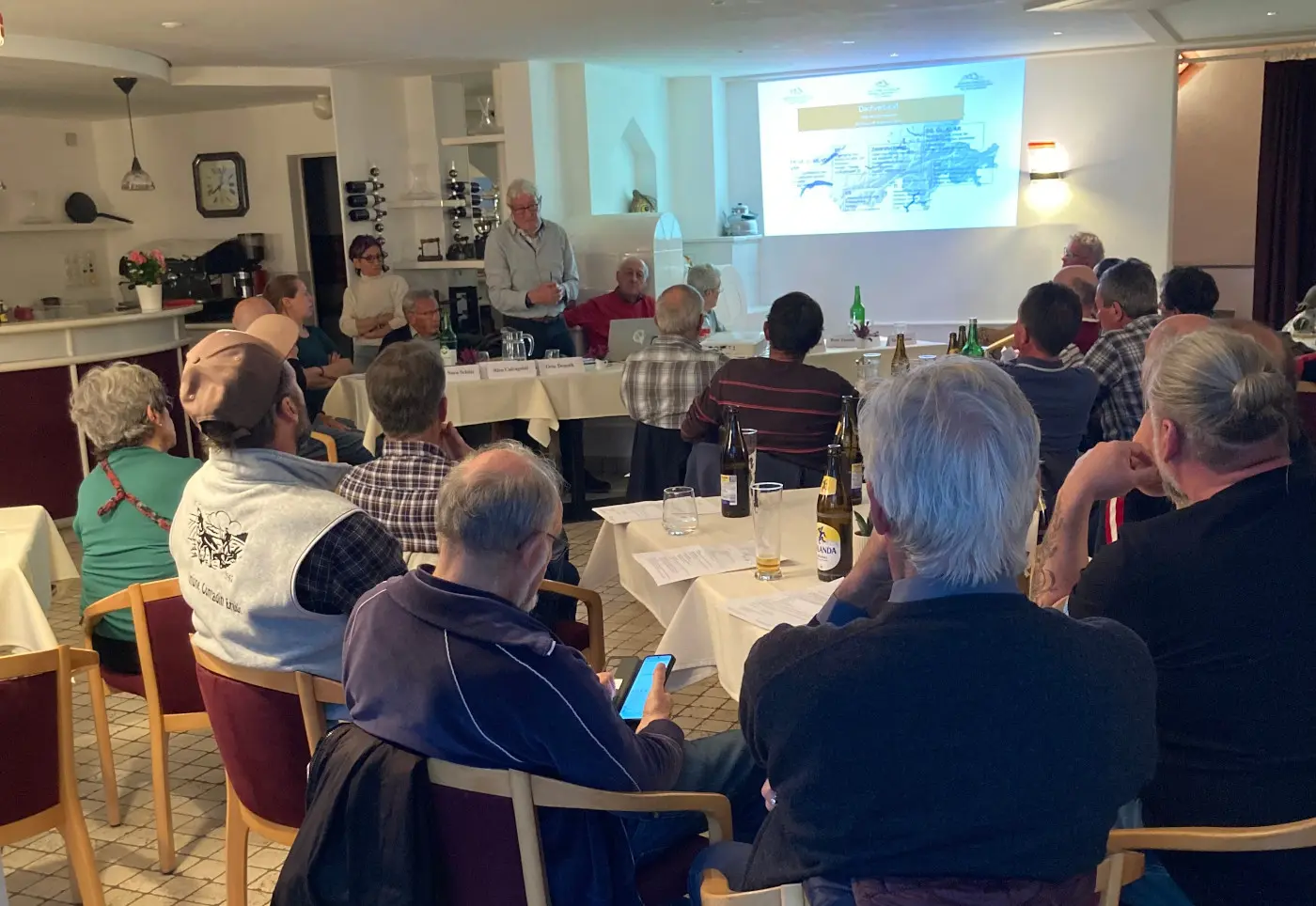 Il presidente Otto Denoth ha descritto la situazione attuale relativa a lupi e orsi nel cantone e ha osservato che, per la prima volta, un orso ha svernato in Engadina e ora, risvegliatosi dal letargo, sarà probabilmente molto affamato. Ha valutato positivamente il fatto che in Parlamento siano in discussione tre mozioni per noi importanti: il consigliere agli Stati Pascal Broulis chiede che i lupi possano essere abbattuti tutto l'anno, la consigliera agli Stati Esther Friedli che ciò sia possibile anche nelle zone di divieto di caccia e il consigliere agli Stati Fabio Regazzi propone un cambiamento di paradigma. I Cantoni dovrebbero stabilire per regione il numero massimo di lupi, per poter eliminare in modo non burocratico gli animali in eccesso.